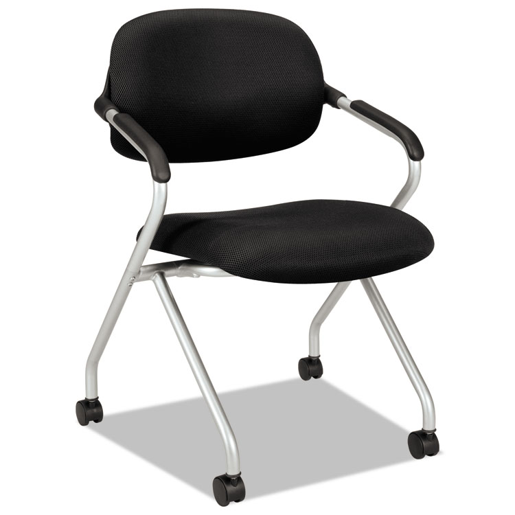 Hvl303 Nesting Arm Chair, Supports Up To 250 Lb, Black Seat/back, Silver Base
