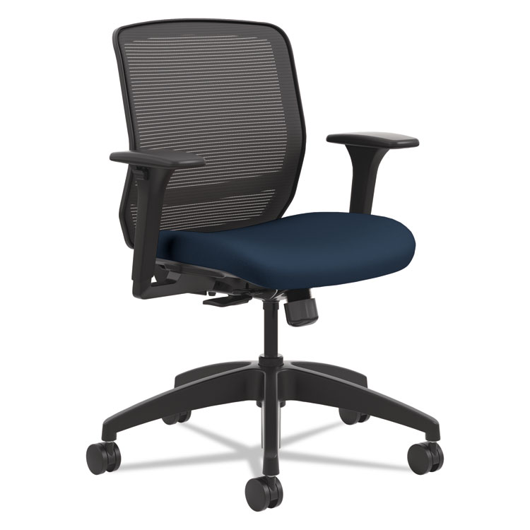 Quotient Series Mesh Mid-Back Task Chair, Supports up to 300 lbs., Navy Seat/Black Back, Black Base