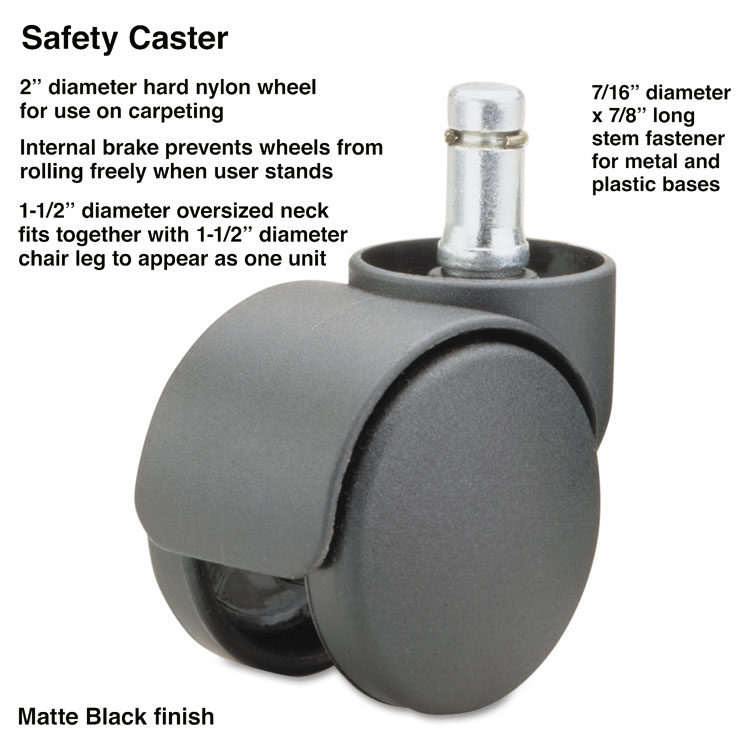 Safety Casters,oversize Neck, Nylon, B Stem, 110 Lbs/caster, 5/set