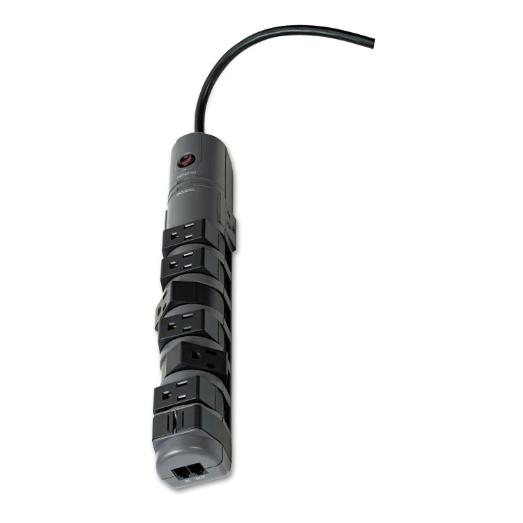 Pivot Plug Surge Protector, 8 Outlets, 6 Ft Cord, 1800 Joules, Gray