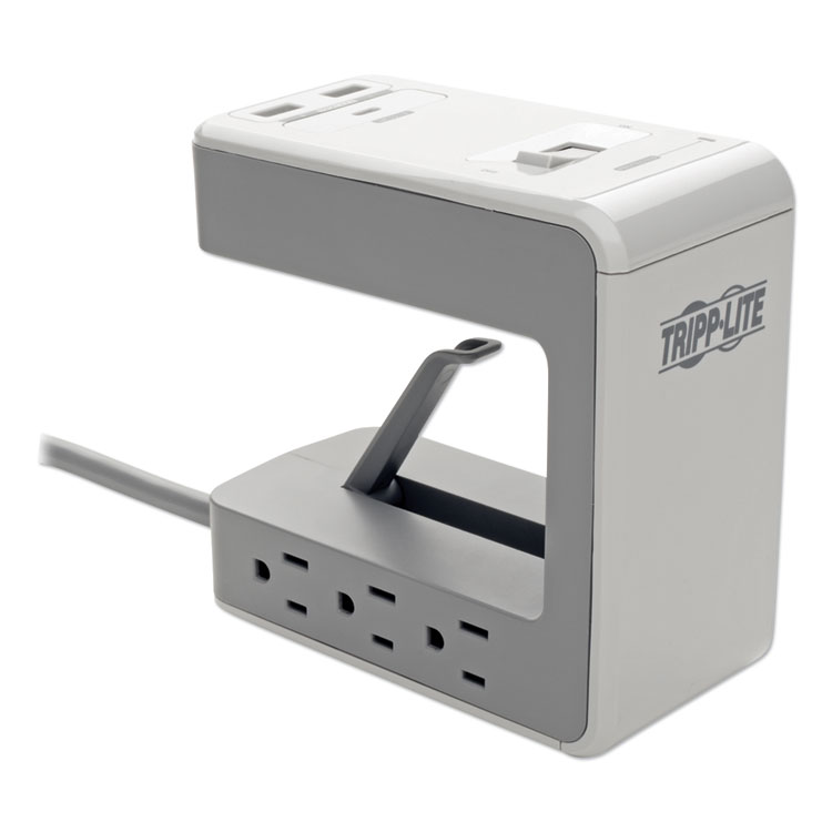 Six-Outlet Surge Protector With Two Usb-A And One Usb-C Ports, 8 Ft Cord, 1080 Joules, Gray