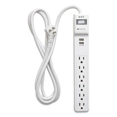 Surge Protector, 6 Ac Outlets, 2 Usb Ports, 6 Ft Cord, 900 J, White