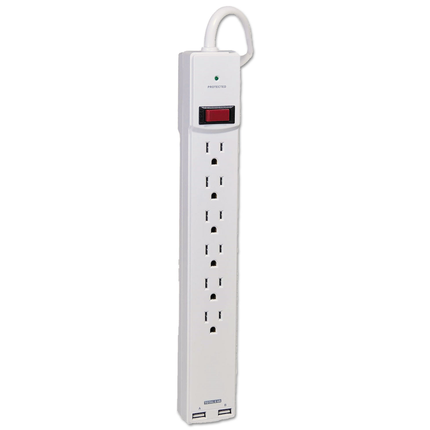Surge Protector, 6 Outlets/2 Usb Charging Ports, 6 Ft Cord, 1080 Joules, White