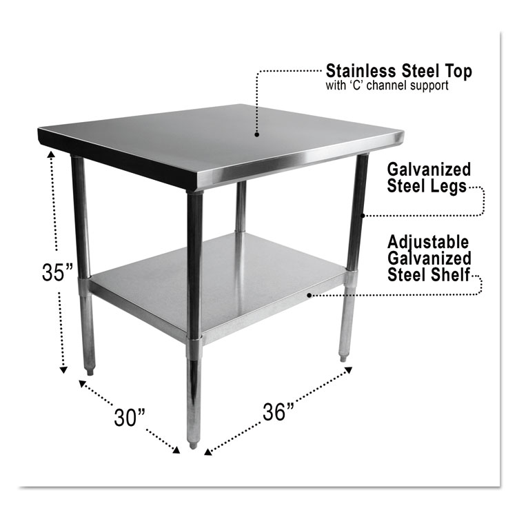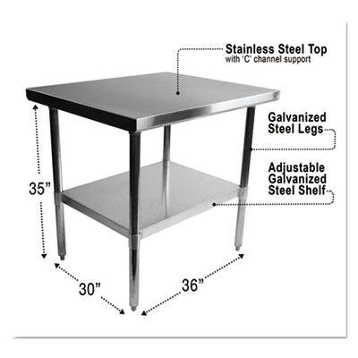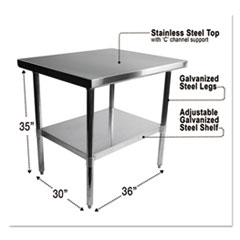 NSF Approved Stainless Steel Foodservice Prep Table, 36 x 30 x 35, Silver