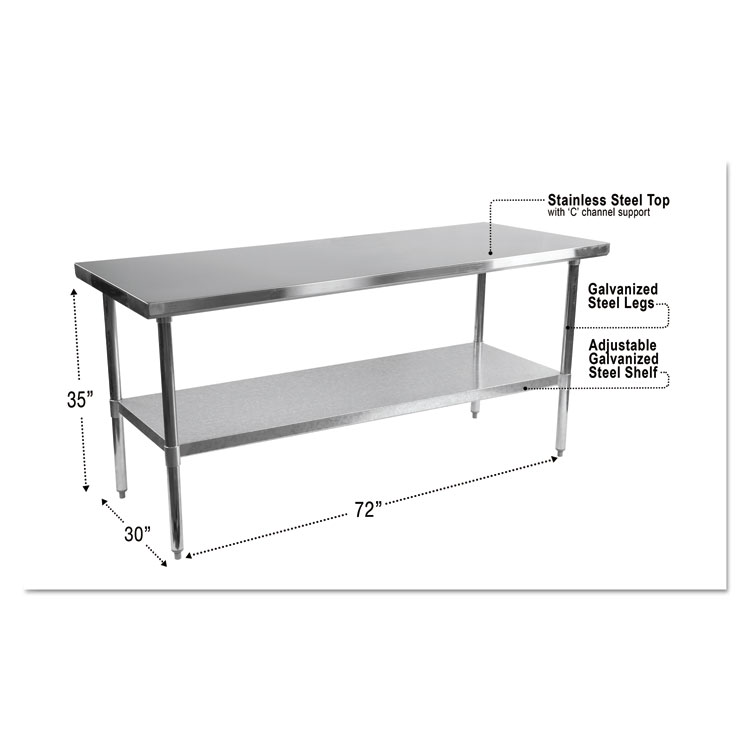 NSF Approved Stainless Steel Foodservice Prep Table, 72 x 30 x 35, Silver