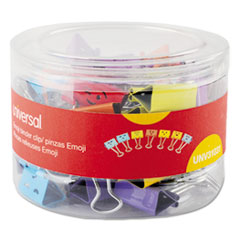 Emoji Themed Binder Clips In Dispenser Tub, Medium, Assorted Colors, 42/pack