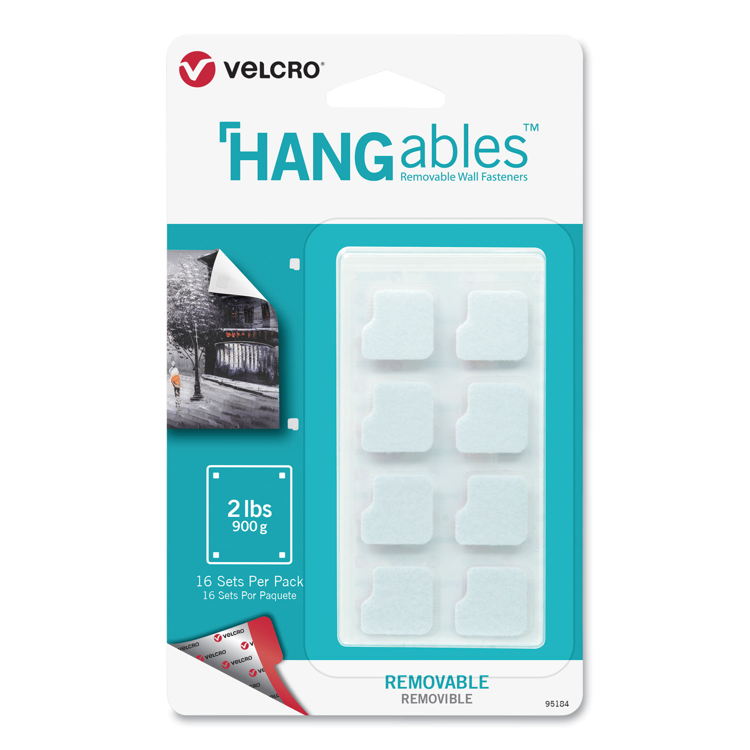HANGables Removable Wall Fasteners, 0.75″ x 0.75″, White, 16/Pack
