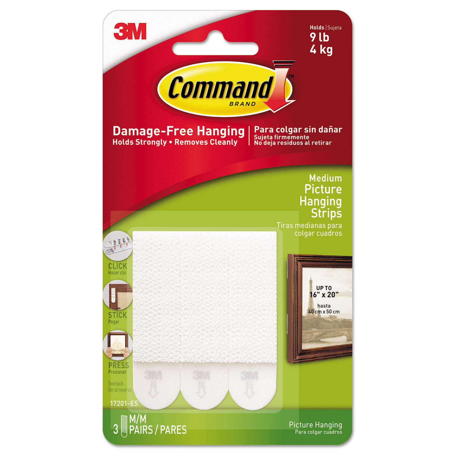 Picture Hanging Strips, Removable, 0.75″ X 2.75″, White, 3 Pairs/pack