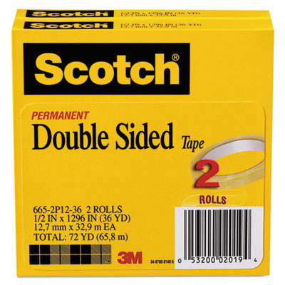 Double-Sided Tape, 3″ Core, 0.5″ X 36 Yds, Clear, 2/pack