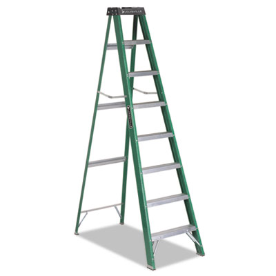 Fiberglass Step Ladder, 8 ft Working Height, 225 lbs Capacity, 7 Step, Green/Black