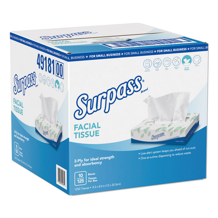 Facial Tissue, 2-Ply, White, Flat Box, 125/box, 10 Boxes/carton