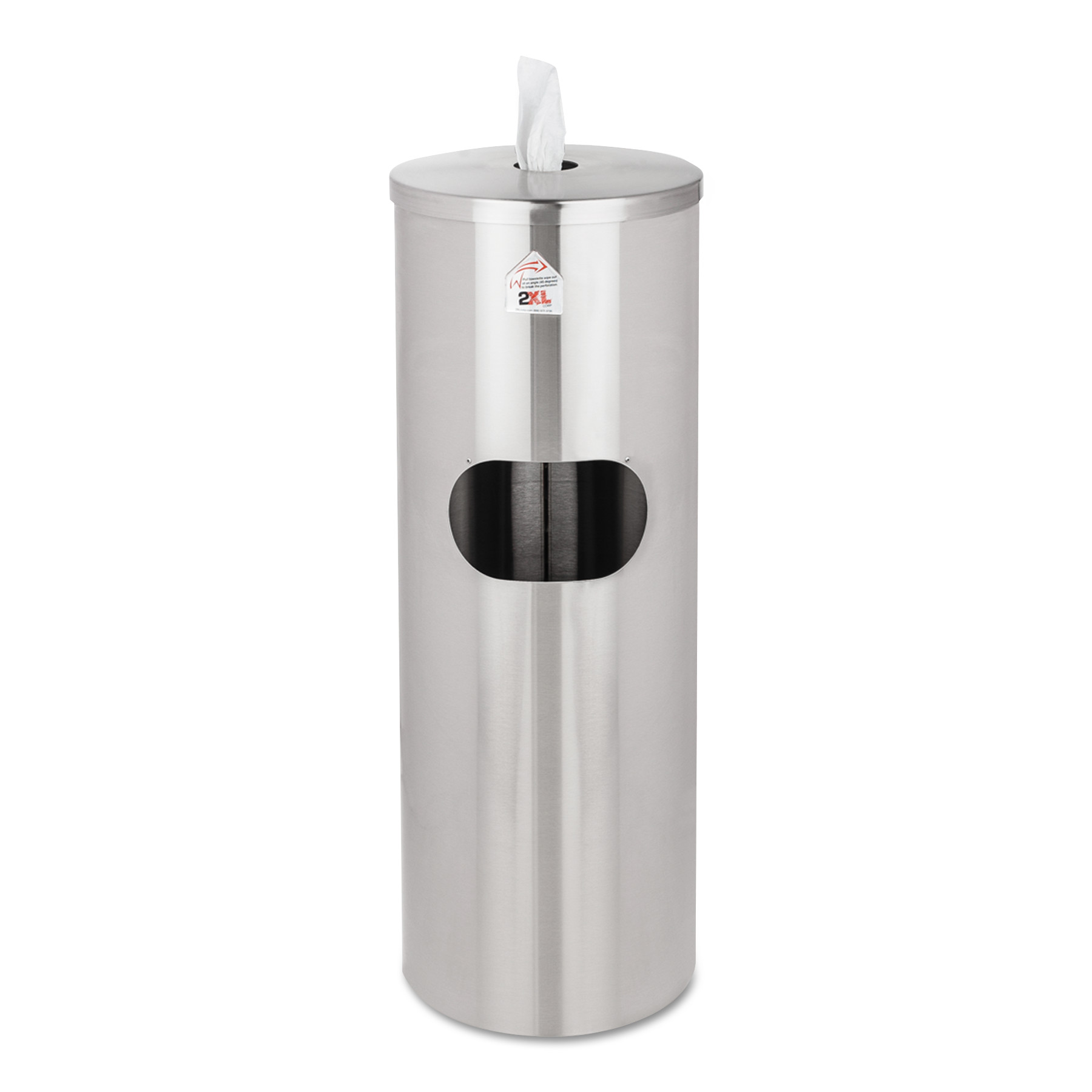 Standing Stainless Wipes Dispener, 12 X 12 X 36, Cylindrical, 5 Gal, Stainless Steel