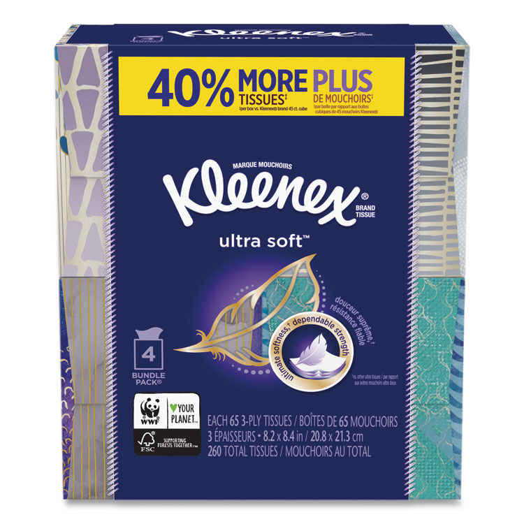 Ultra Soft Facial Tissue, 3-Ply, White, 8.75 x 4.5, 65 Sheets/Box, 4 Boxes/Pack