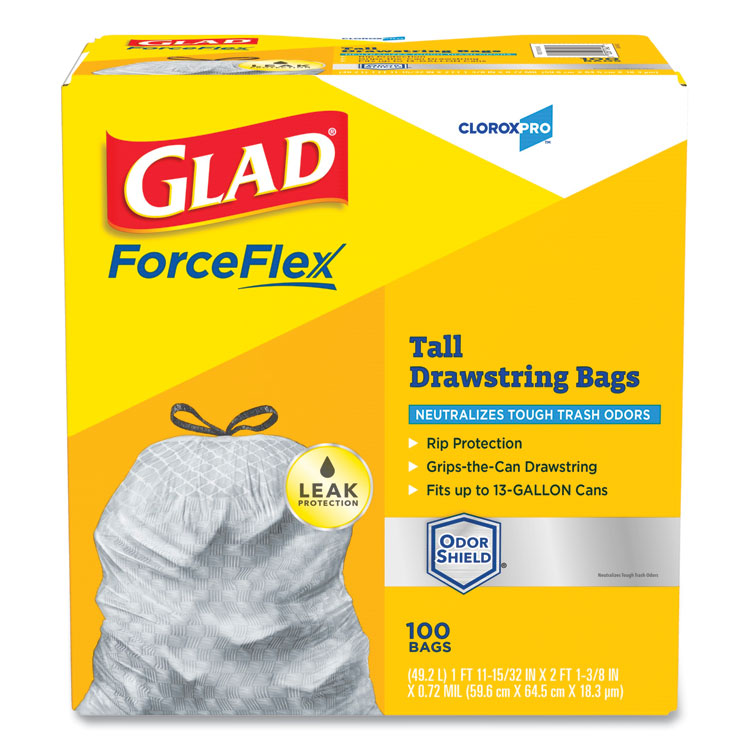 Forceflex Tall Kitchen Drawstring Trash Bags, 13 Gal, 0.72 Mil, 23.75″ X 24.88″, Gray, 100/box