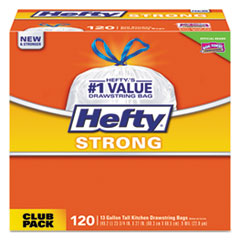 Strong Tall Kitchen Drawstring Bags, 13 Gal, 0.9 Mil, 24″ X 27.75″, White, 120/box