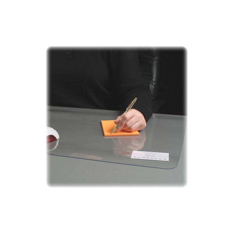 Personalize, organize and protect your work space with this quality desk pad. Rectangular desk pad offers a superior writing surface that will not indent, scratch or stain. The smooth surface reduces writing fatigue. Unique non-glare, non-slip surface provides a perfect way to protect your personal photographs and important reference materials. Crystal-clear desk pad also resists copy lifting and is made of PVC material.