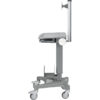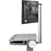 Our Mobile Standing Workstation / Computer Cart is great for medical urgent care or industrial use. It features a pneumatic lift lever that easily adjusts the height of the work surface and monitor to quickly go from a sitting to standing operation or vice versa. The monitor mount is compatible with all 75/100mm VESA equipped monitors up to 19.8 lbs. The mount can also tilt and swivel up to 15 degrees and is height adjustable in relation to the work surface. The workstation is built for quiet, discreet operation and is great for care centers. A pull out keyboard tray retracts with a soft-close mechanism for minimal intrusiveness. The sturdy metal base rests on 4 silent-grade casters that are non-marring and the two front casters can locks or unlock with a simple step. The work/writing surface is equipped with two ergonomic handle holds for easy maneuverability and is non-porous for easy cleaning/disinfecting.
