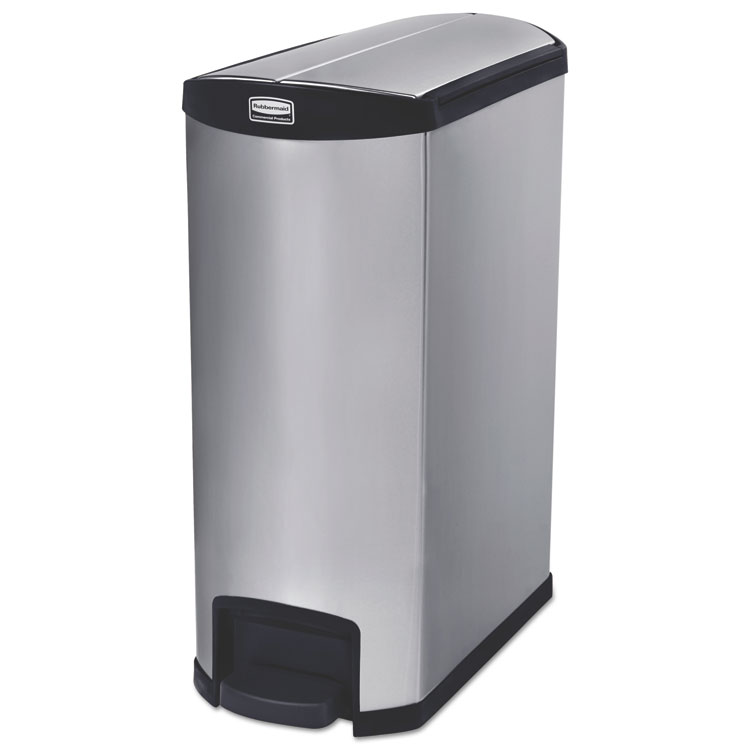 Slim Jim Stainless Steel Step-On Container, End Step Style, 24 Gal, Black