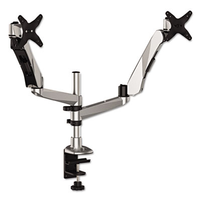 Easy-Adjust Desk Dual Arm Mount For 27″ Monitors, 360 Deg Rotation, +90/-15 Deg Tilt, 360 Deg Pan, Silver, Supports 20 Lb