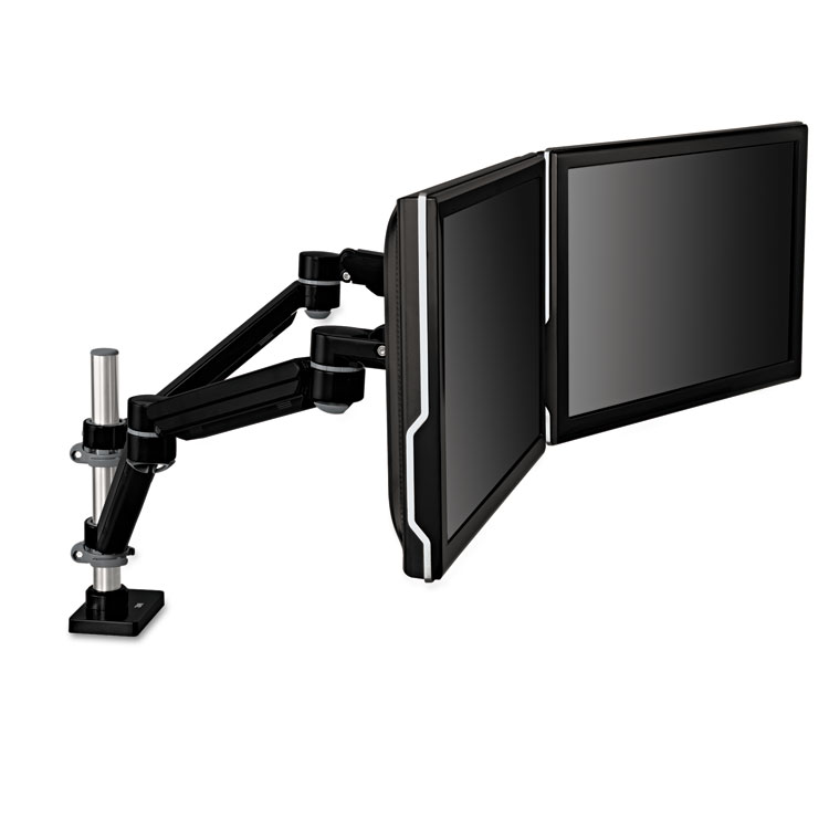 Easy-Adjust Desk Mount 2-Arm For 27″ Monitors, 360 Deg Rotation, +55/-90 Deg Tilt, 180 Deg Pan, Black/gray, Supports 20 Lb