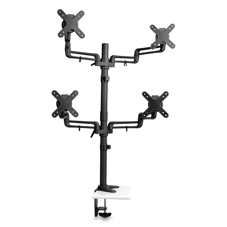 Quad Monitor Mount, For 13″ To 27″ Monitors, 360 Deg Rotation, +15 Deg/-15 Deg Tilt, 180 Deg Pan, Black, Supports 22 Lb