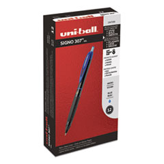 307 Gel Pen, Retractable, Micro 0.5 Mm, Blue Ink, Black Barrel, Dozen