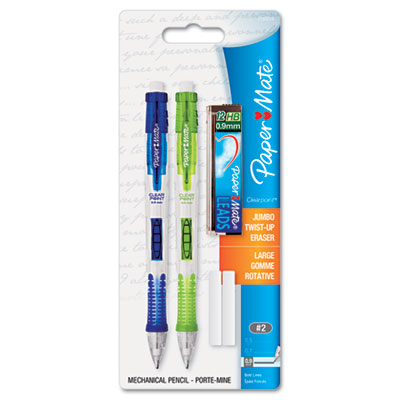 Clear Point Mechanical Pencil, 0.9 Mm, Hb (#2.5), Black Lead, Assorted Barrel Colors, 2/pack