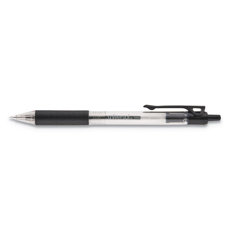 Comfort Grip Ballpoint Pen, Retractable, Medium 1 Mm, Black Ink, Clear Barrel, 48/pack