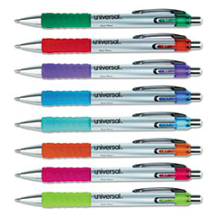 Comfort Grip Gel Pen, Retractable, Medium 0.7 Mm, Assorted Ink Colors, Silver Barrel, 8/pack