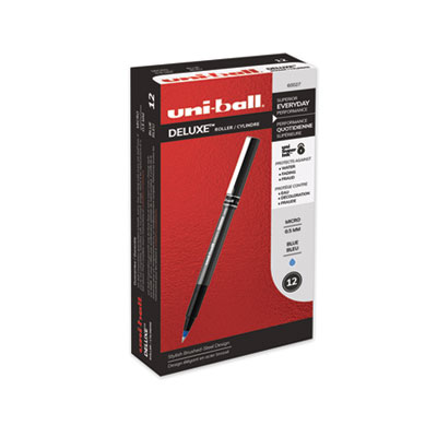 Deluxe Roller Ball Pen, Stick, Micro 0.5 mm, Blue Ink, Metallic Gray Barrel, Dozen