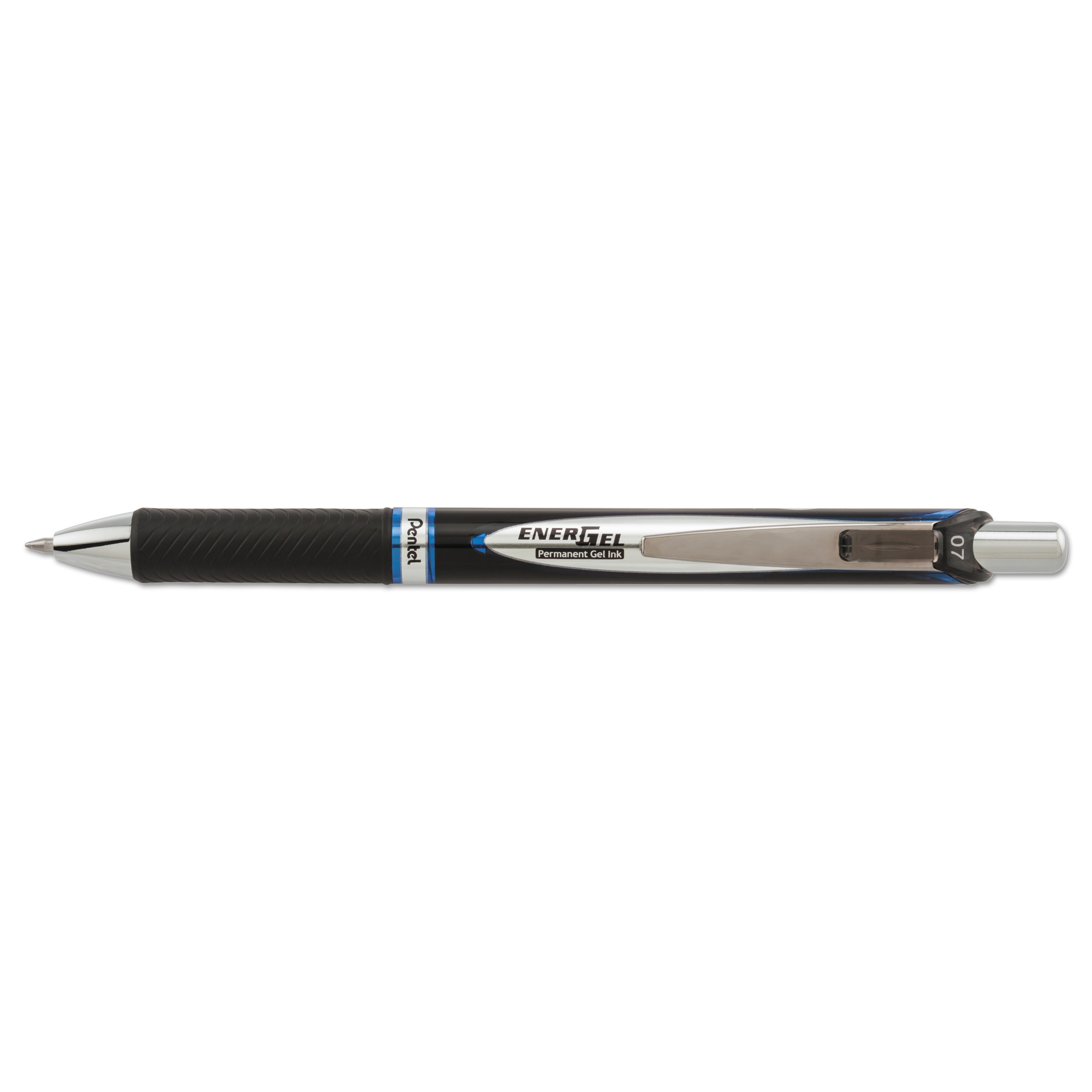 Energel Pro Permanent Ink Gel Pen, Retractable, Medium 0.7 Mm, Blue Ink, Black Barrel