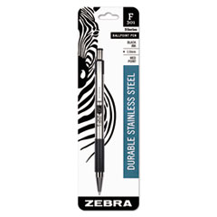 F-301 Ballpoint Pen, Retractable, Medium 1 Mm, Black Ink, Stainless Steel/black Barrel