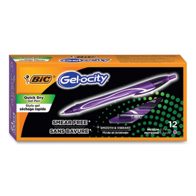 Gel-Ocity Quick Dry Gel Pen, Retractable, Medium 0.7 Mm, Purple Ink, Purple Barrel, Dozen