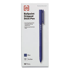 Gripped Stick Ballpoint Pen, Stick, Medium 1 mm, Blue Ink, Blue Barrel, Dozen