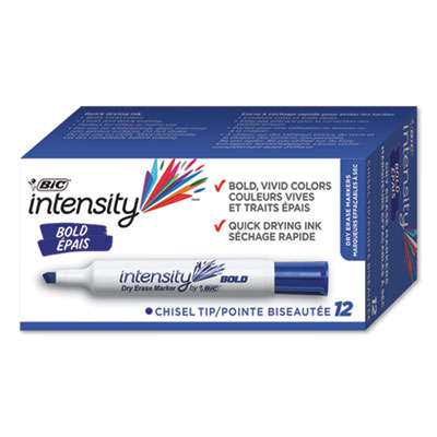 Intensity Bold Tank-Style Dry Erase Marker, Broad Chisel Tip, Blue, Dozen