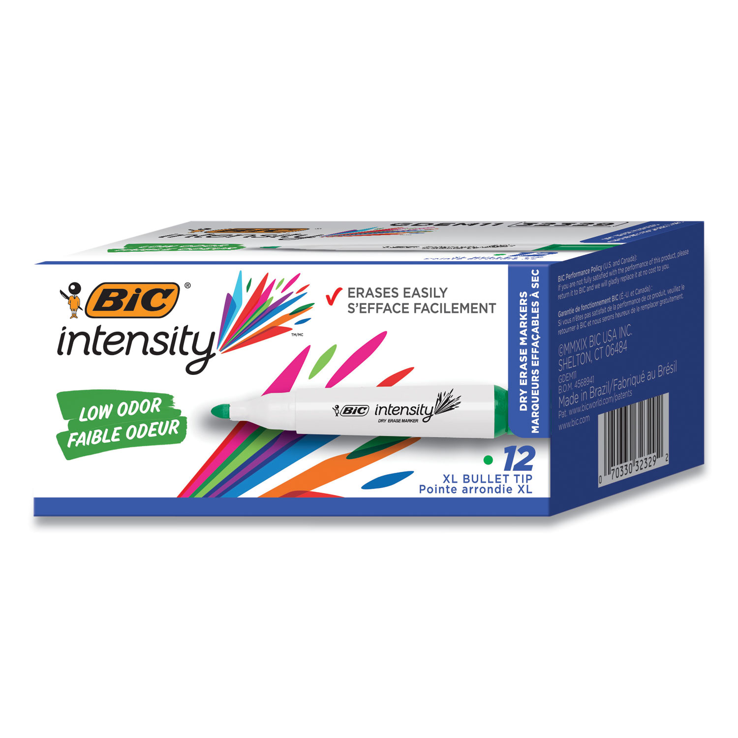 Intensity Low Odor Chisel Tip Dry Erase Marker, Broad Chisel Tip, Green, Dozen