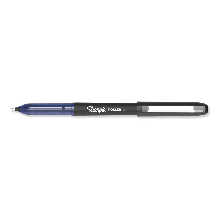 Professional Design Roller Ball Pen, Stick, Medium 0.7 Mm, Blue Ink, Black Barrel, Dozen