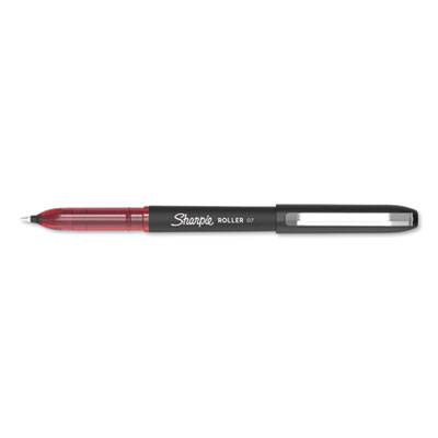 Professional Design Roller Ball Pen, Stick, Medium 0.7 mm, Red Ink, Black Barrel, Dozen