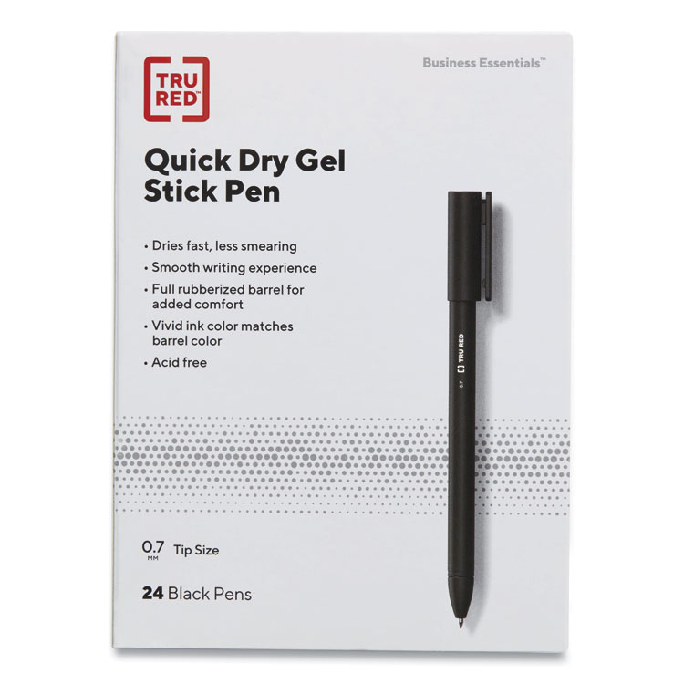 Quick Dry Gel Pen, Retractable, Medium 0.7 mm, Black Ink, Black Barrel, 5/Pack