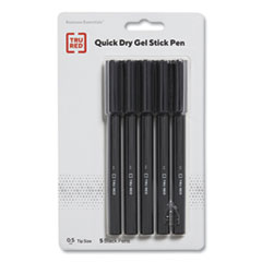 Quick Dry Gel Pen, Stick, Fine 0.5 Mm, Black Ink, Black Barrel, 5/pack
