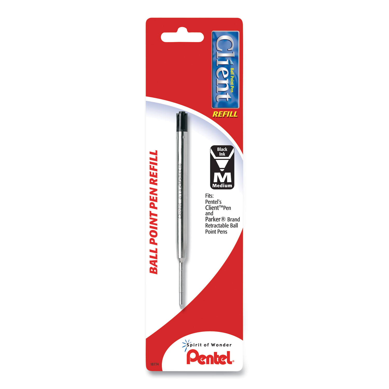 Refill For Pentel Client Ballpoint Pens, Medium Conical Tip, Black Ink