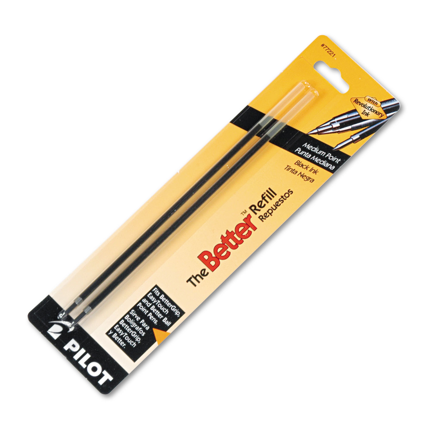 Refill For Pilot Better, Bettergrip, Easytouch And Camo Ballpoint Pens, Medium Conical Tip, Black Ink, 2/pack