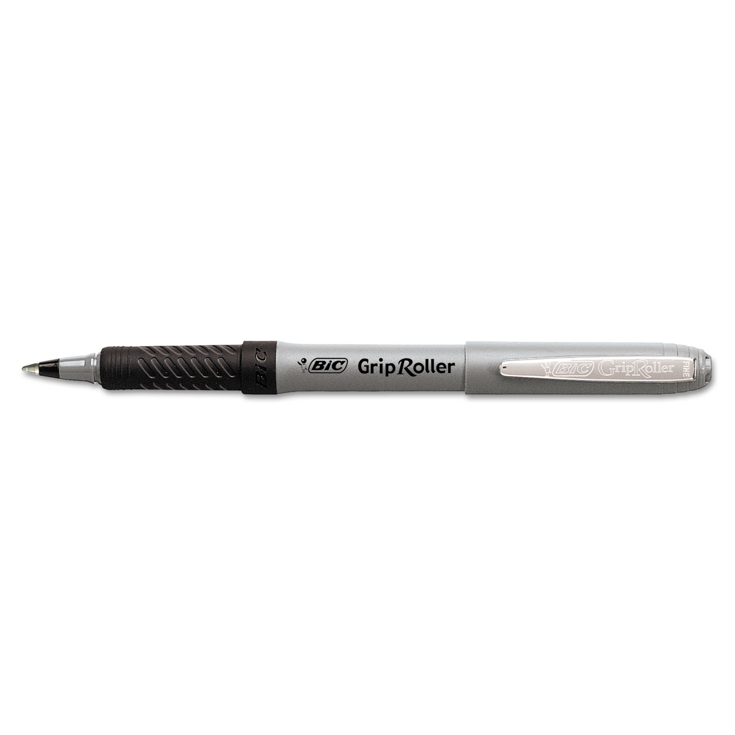 Roller Glide Roller Ball Pen, Stick, Fine 0.7 mm, Black Ink, Gray Barrel, Dozen