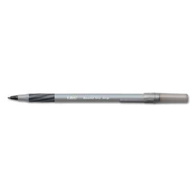 Round Stic Grip Xtra Comfort Ballpoint Pen, Stick, Fine 0.8 mm, Black Ink, Gray/Black Barrel, Dozen