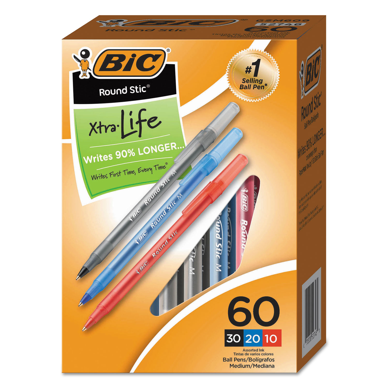 Round Stic Xtra Precision Ballpoint Pen Value Pack, Stick, Medium 1 mm, Assorted Ink and Barrel Colors, 60/Pack