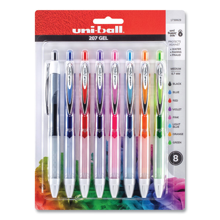Signo 207 Gel Pen, Retractable, Medium 0.7 Mm, Assorted Ink And Barrel Colors, 8/pack