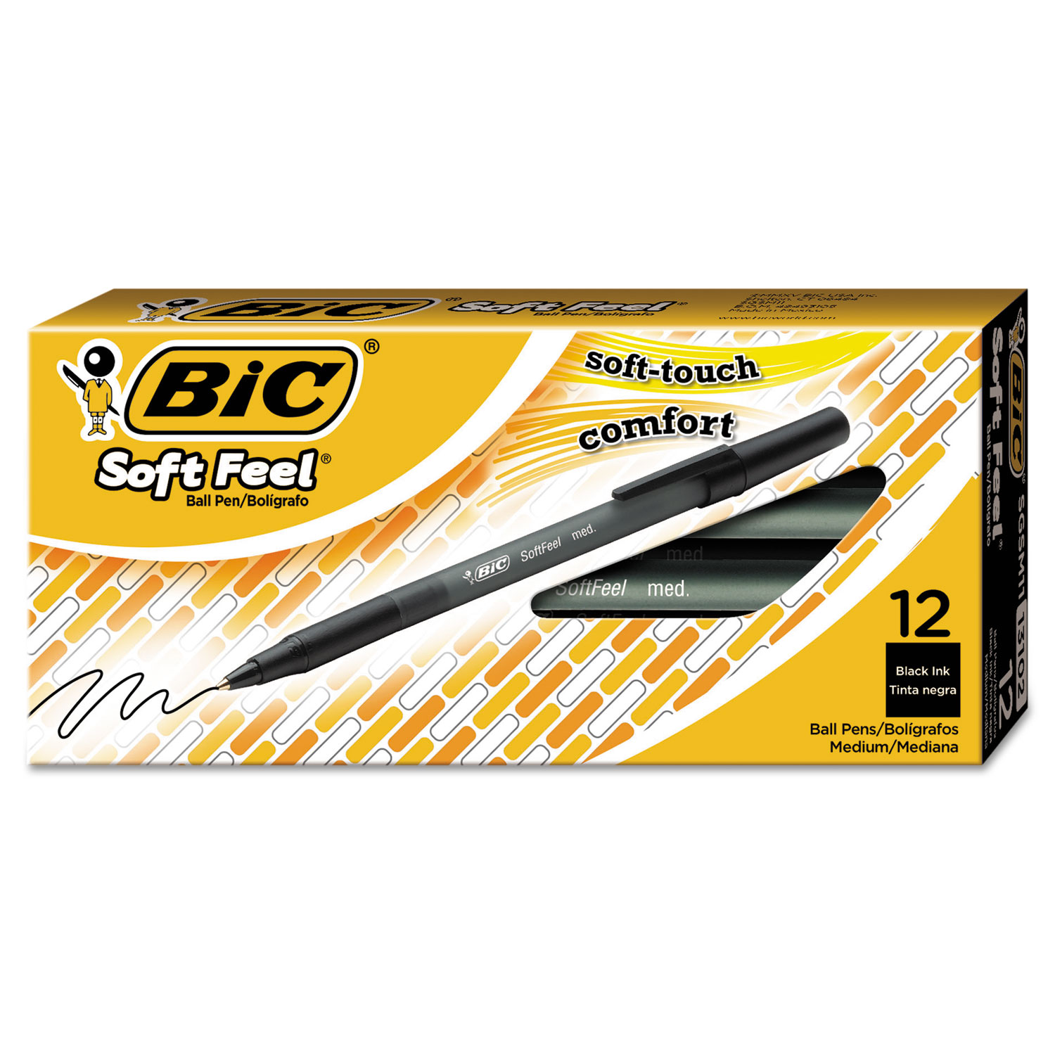 Soft Feel Ballpoint Pen, Stick, Medium 1 Mm, Black Ink, Black Barrel, Dozen