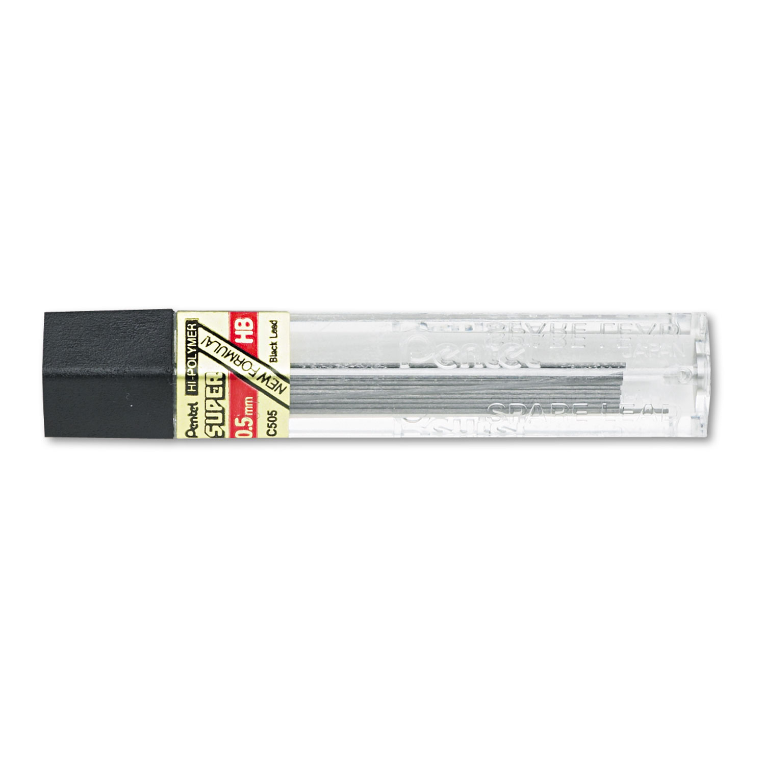 Super Hi-Polymer Lead Refills, 0.5 Mm, Hb, Black, 12/tube