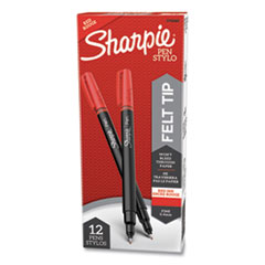 Water-Resistant Ink Plastic Point Pen, Stick, Fine 0.4 mm, Red Ink, Black/Gray/Red Barrel, Dozen